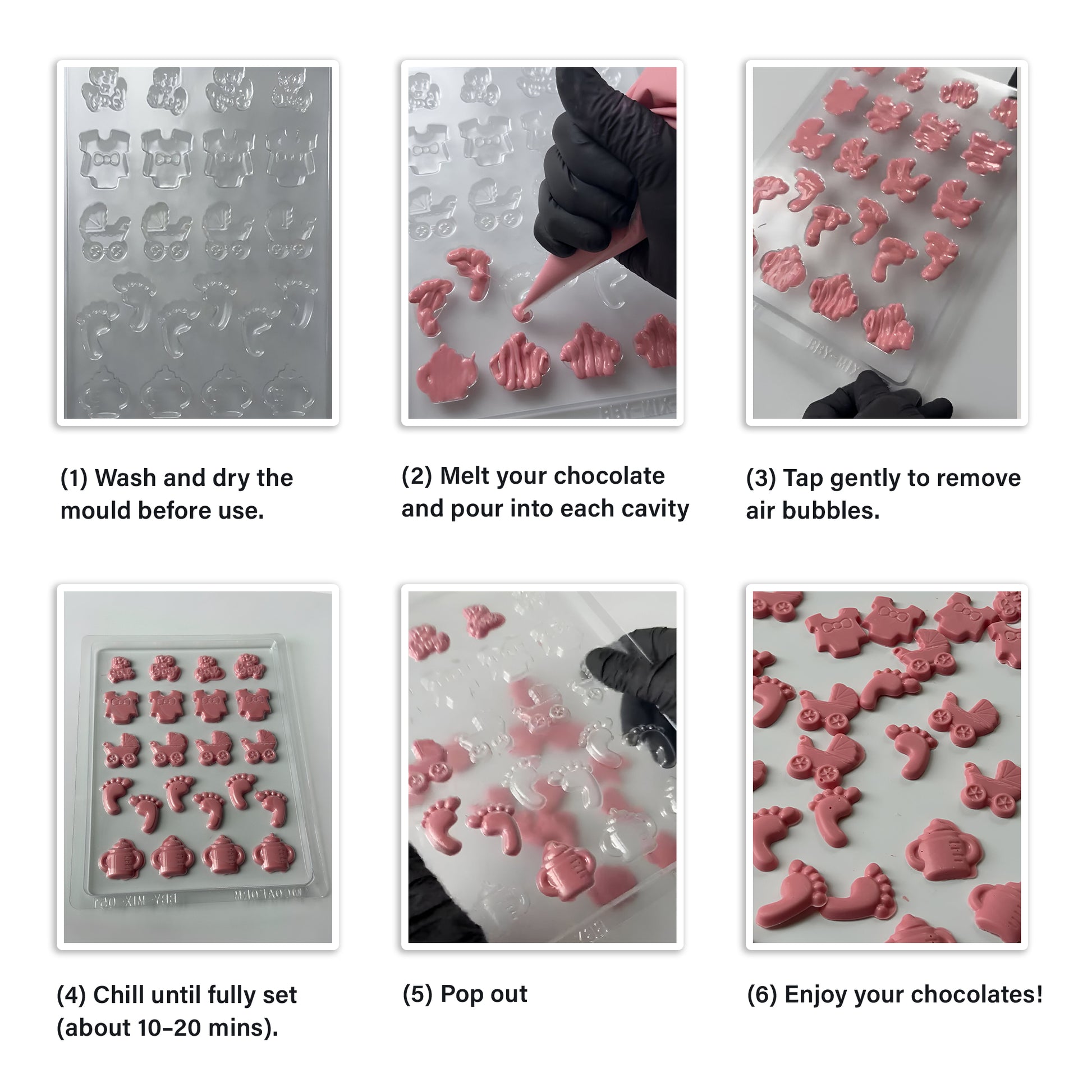 Create adorable baby-themed chocolates with this easy-to-use plastic mould. Perfect for baby showers, gender reveals, party favours, or decorating brownies and cupcakes.