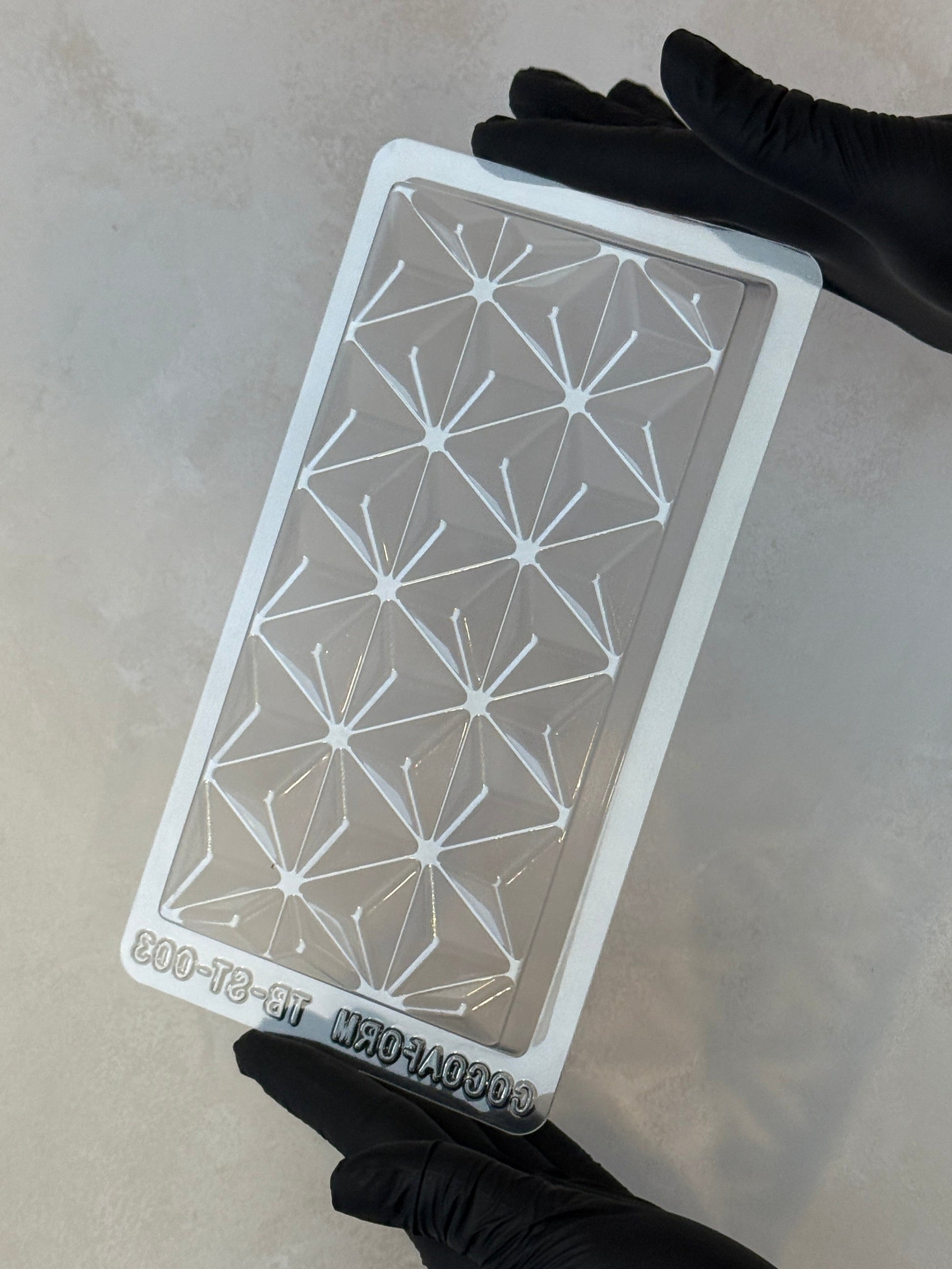 Our Geometric Chocolate Bar Mould is thoughtfully designed for turn-key chocolate creations, delivering flawless results time after time. Whether you're filling bars with rich ganache or silky caramel, this user-friendly mould guarantees impressive shine and sharp geometric precision, elevating your homemade chocolates to an artisan level.
