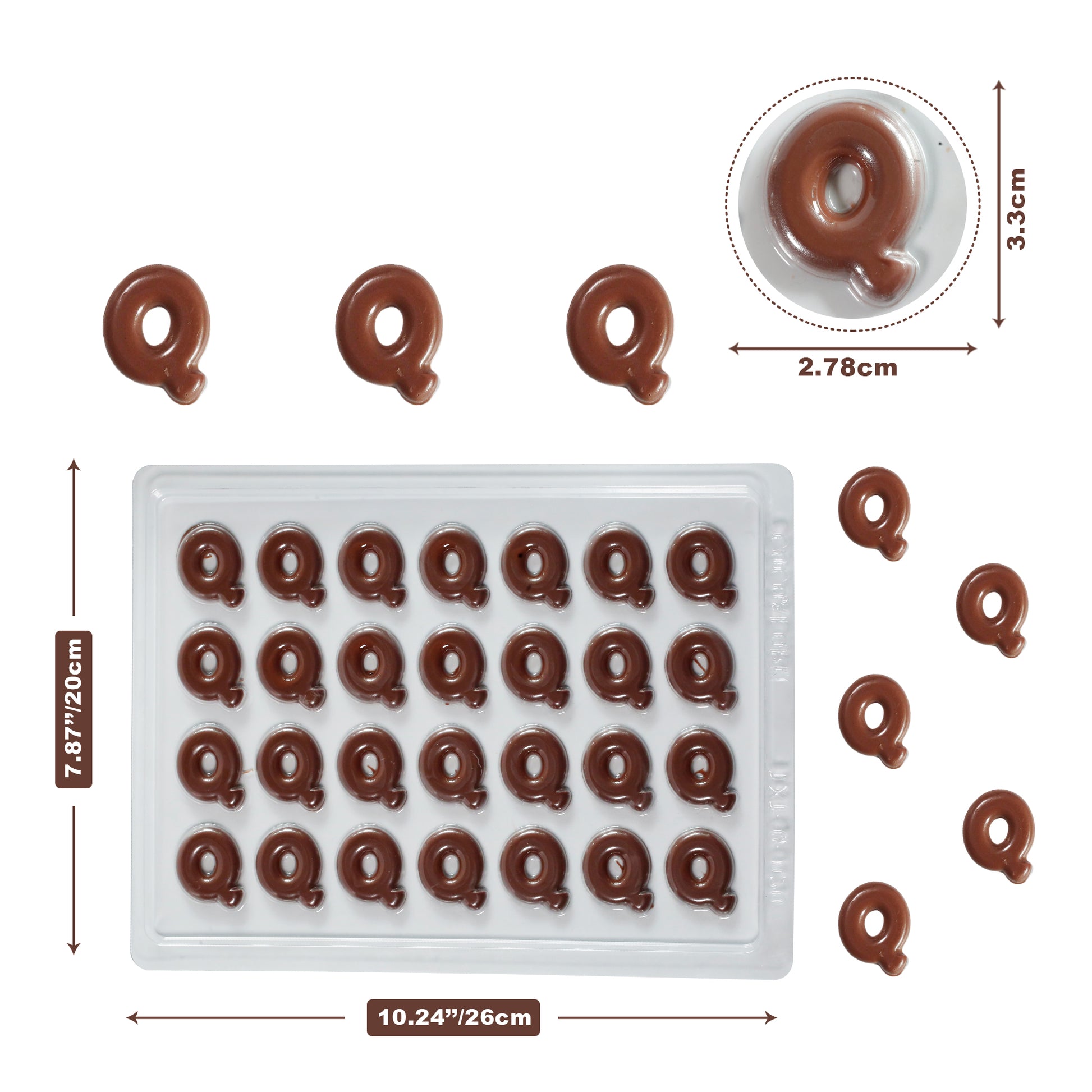 Each mould features multiple cavities of the same letter, perfect for making chocolate toppers to decorate brownies, cakes, or desserts.