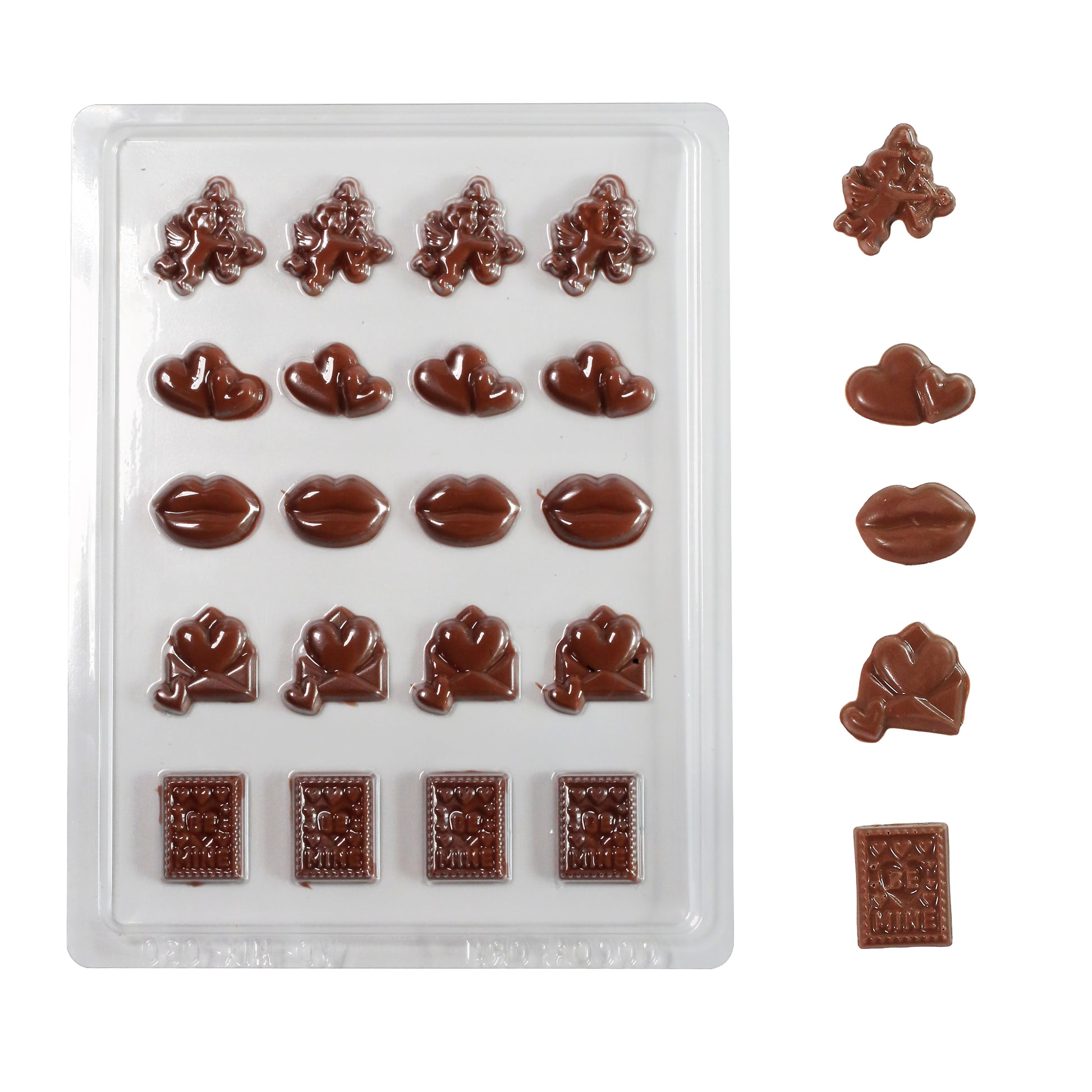 Valentine’s Icons Chocolate Mould (20 cavities) – Cupid, Hearts, Lips, Love Letter & ‘Be Mine’